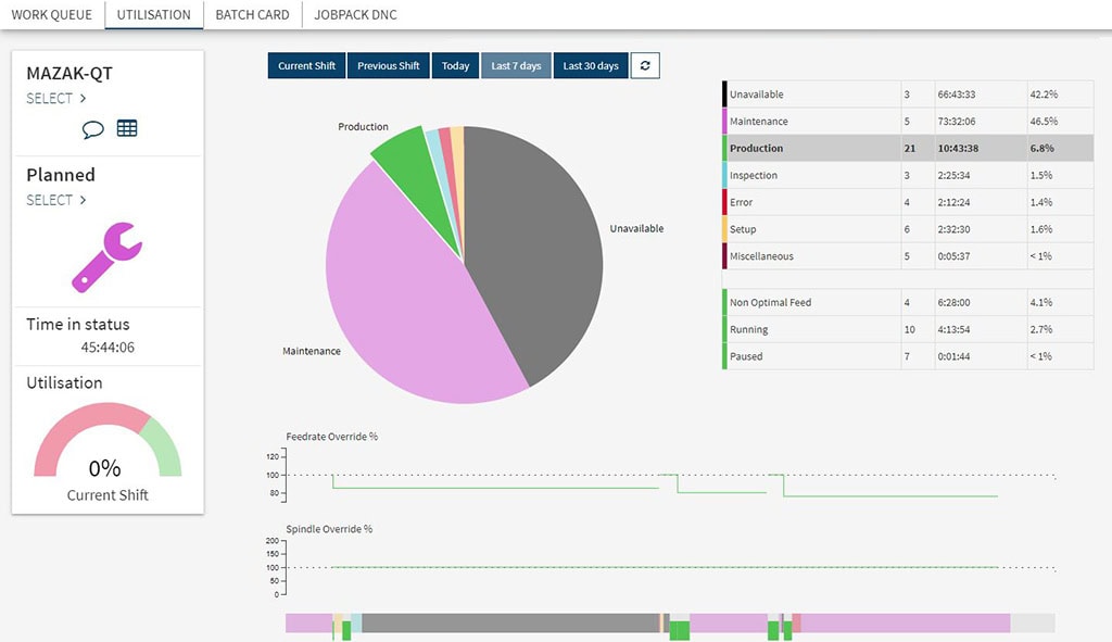 Machine monitoring gives you a close look at equipment performance, so you can see exactly when a machine starts to struggle or wear down. Once you spot the signs, you have the opportunity to schedule maintenance or repair at a time when it will have the lowest impact on your production plan. Over time, collected machine data can also reveal patterns in equipment wear, so you can even plan production around the inevitable maintenance windows—which means zero penalty to your output or on-time delivery rates.